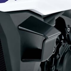 防風性と車体安定性を空力で追求。膝まわり付近の空気の流れも変わっている。