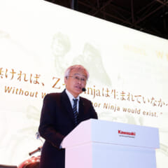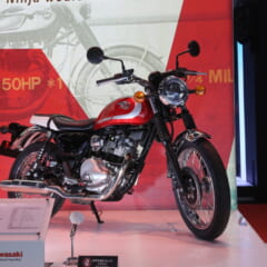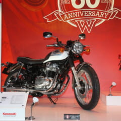 そして現行モデルのW800とW230を並べ、記念すべき60周年をアピールした。壇上の「Wがなければ、ZやNinjaは生まれていなかった」というキャッチが実に印象的だった。