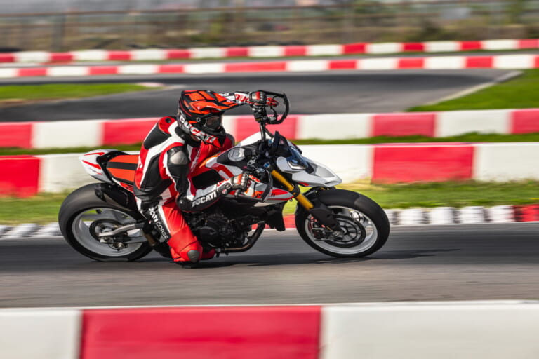 新型ハイパーモタードは、先代950からフルモデルチェンジがなされ、最新スペックのV2エンジン、そして新設計のモノコックフレームが採用されるなどトピックスが盛りだくさん。ハイパーモタードは誕生から20年を迎え、今回のニューモデルこそ「史上最高」と呼ばれるのも大いに納得の仕上がりです。