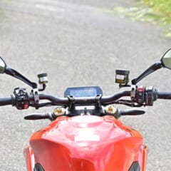 バーハンドルのおかげでライディングポジションが自由自在。リーンインもリーンアウトもキマる。