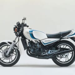 RZ250の発売は‘80年8月。同時代のライバル勢とライディングポジションを比較すると、スポーツ性に特化したRZは、ハンドルが低めで、ステップ位置が後退していた。