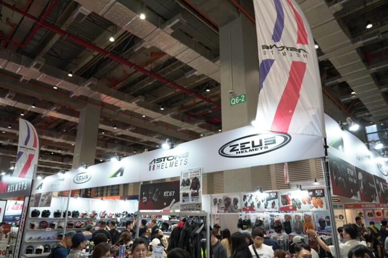 台湾ナップスの協力のもと、アライヘルメットとKOMINEブースの展開や、工具専門店のファクトリーギアから「DEEN」ブースも初出展。さらにSHOEIやRSタイチなど日本でもおなじみのブランドは注目されていた。