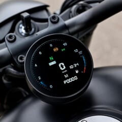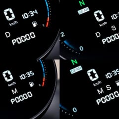 円形TFTフルカラーメーター。燃料残量計、ギヤポジションインジケーター、時計などを表示する。速度は中央にデジタル表示し、回転計は外周を利用したアナログ風となっている。