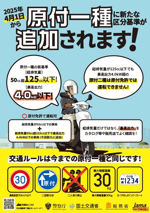 前述したように、50ccガソリン原付が生産終了となったため、その代替モビリティとして開発されたのが新基準原付モデルだ。50cc超~125cc以下、いわゆる原付二種モデルの最高出力を4.0kW以下に抑えたモデルであり、車体は原付二種と同じながら原付免許で運転できる。まさに今後のガソリン原付の主役となるモデルであり、道交法上の交通ルールも原付一種と同じ。最高速度の30km/h規制や3車線以上の交差点での二段階右折、二人乗りの禁止といった運用法も変わらない。