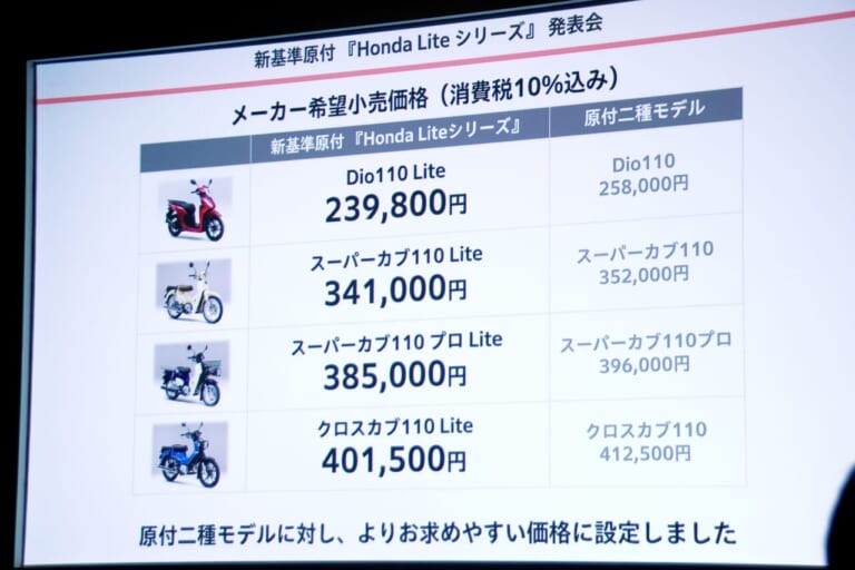 本記事執筆時点では、ホンダが「Honda Liteシリーズ」として4車種を25年12月11日までに発売しており、ベースとなる原付二種モデルの名前の後ろにそれぞれ“Lite(ライト)”と名付けられている。