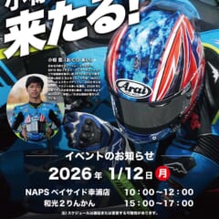 日本人MotoGPライダーとして活躍中のMoto2チャンピオン・小椋藍選手によるトークショー&サイン会が2026年1月12日に開催される。 午前と午後では異なる会場での開催だ。まず10時~12時はナップス ベイサイド幸浦店(神奈川県)、そして15時~17時は和光2りんかん(埼玉県)なので、お住まいの地域によってどちらに行くか選ぶことができる。 いずれもトークショーとサイン会が開催されるが、サイン会 […]