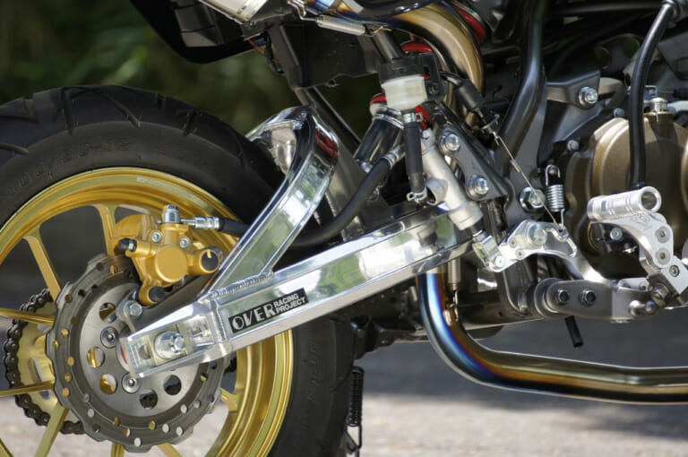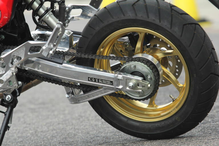 独自のメインパイプを使用して軽量でありながら適度なしなりをもたせ、強度や剛性は純正に比べても高い水準で両立するOVER RacingのホンダCT125用「スイングアーム OVタイプ スタビ付/STD CT125(20-22)(23-)」。性能面を追求して生み出された機能美が特徴だ。OVER Racing扱い:9万200円