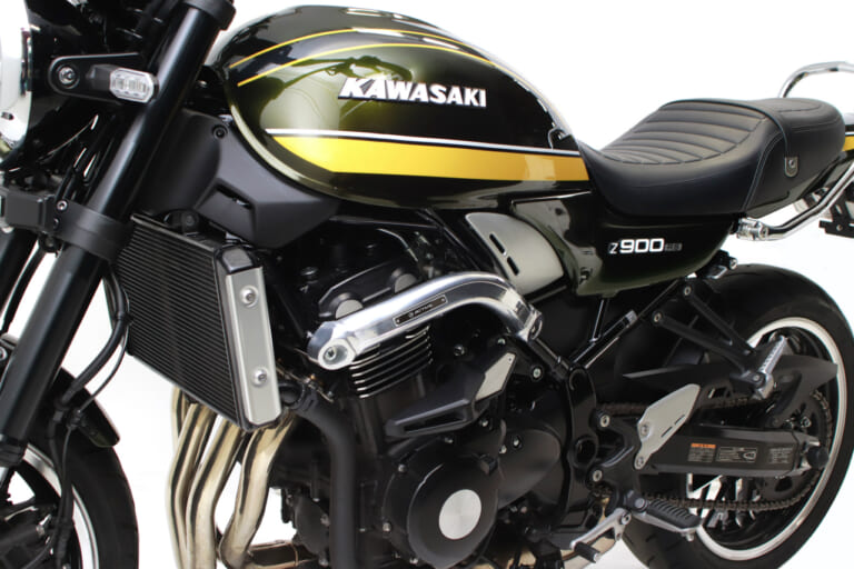 ACTIVEが展開している「サブフレーム バフ TYPE-2」。車体の剛性バランスを保ち、コーナリングやブレーキング時の車体の挙動を安定させるとともに、バフがけされた美しい表面とリブをもたせたパイプ形状はドレスアップ効果も高い。ACTIVE取り扱い:4万7300円(KAWASAKI Z900RS 2018~2025/KAWASAKI Z900RS CAFE 2018~2025)