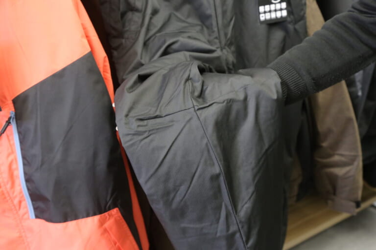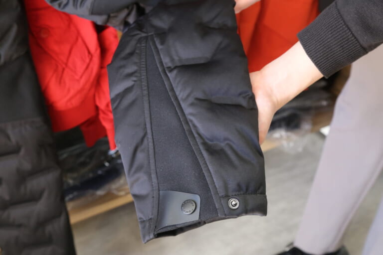 表地にストレッチ生地を使用するほか、腰部分や膝裏、裾には伸縮性のある生地を備え、防寒のみならず動きやすさも考慮した造りになっている。