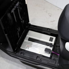 シート高は742mm。低くし過ぎるとフットフロアとの兼ね合いで膝の曲がりが強くなるということでこの高さに落ち着いたという。