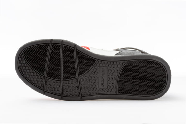 アウトソールはフラット形状とし、ステップに引っかかりにくい設計とした。シフトチェンジやリアブレーキ操作をスムーズに行えるのはもちろん、足をステップ上で動かす際のストレスも少ない。バイク用としての基本を押さえた仕上がりだ。