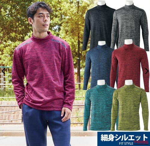 落ち着いた雰囲気でおしゃれな杢(もく)柄のハイネックシャツ。裏地にはブロックフリースを採用し、体をやさしく温めてくれる。