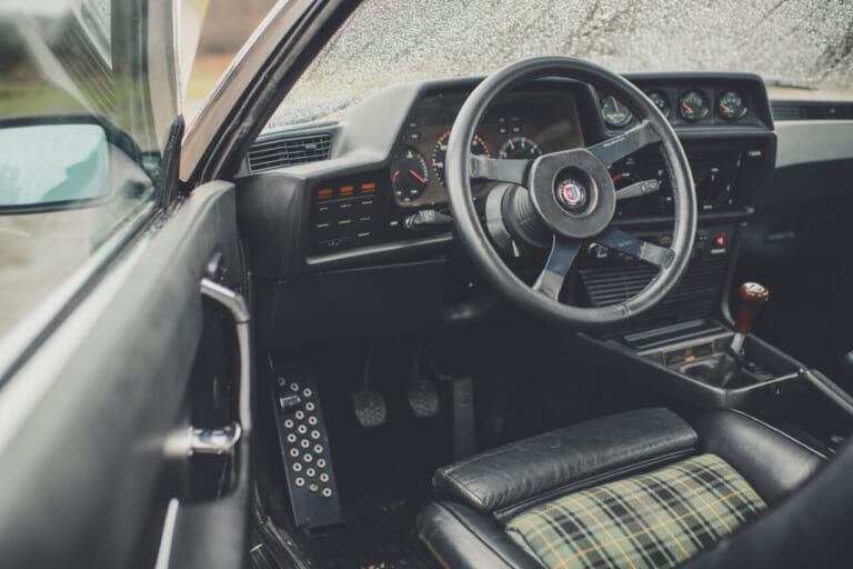 そして、今回ご紹介するのがB7の進化&限定版として1982年に登場したB7Sターボ。BMWによる3.5リッターの直6(M88)を搭載しつつ、当時としては採用例が極めて少なかったインタークーラーをはじめ、同社のチーフエンジニア、Dr.ツェセール(Cser)によるレゾナンス式(共鳴)インテークマニホールド、AFT製電子式点火システムといった先端技術が惜しみなく投入されています。もちろん、ブースト調整ダイヤルも継承され(0.6~0.9barと1.5~1.8barなど諸説あります)最大出力330hp、最大トルク500Nmへとパワーアップを遂げています。この結果、0-100km/h加速:5.8秒、最高速は262km/hを記録することに。なお、搭載されるミッションはZF製5速マニュアル(ゲトラグ265という説もあります)で、オールドファンには懐かしいピレリP7を装着していました。