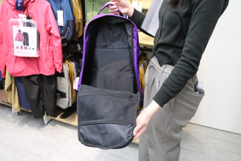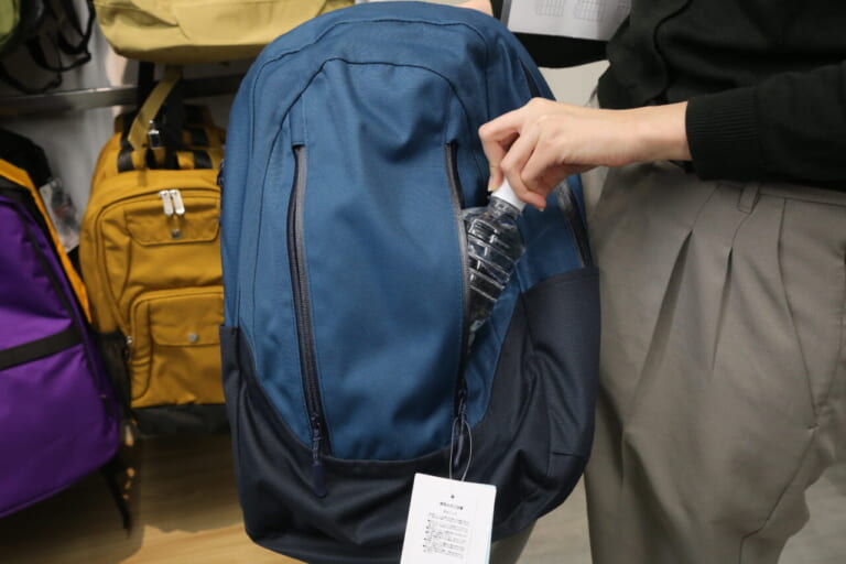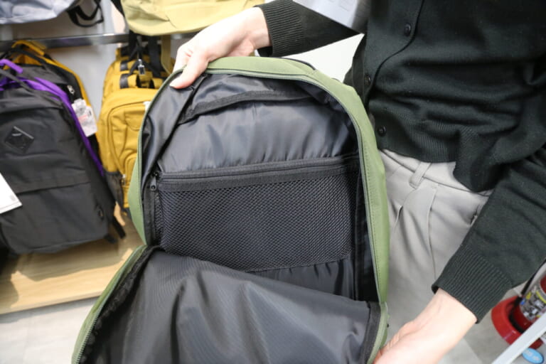ものが取りやすい前面のポケットや収納性に優れた中間のメインスペースのほか、A4サイズの書類やノートパソコンをスッキリ収納できる造りの背中側の収納スペースを用意。使い勝手に優れた仕様になっている。