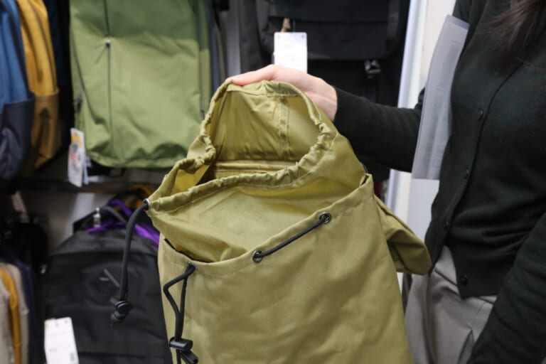 本体の開口部は調整可能な紐で絞れる構造になっている。