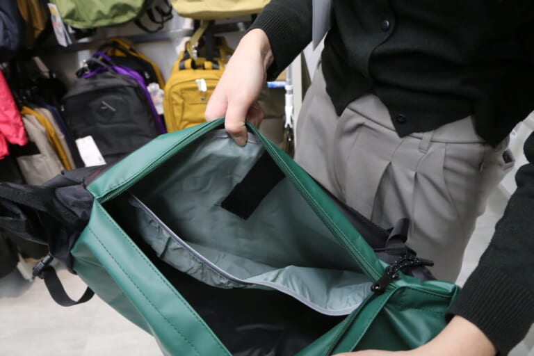 丈夫なポリエステル生地とYKK止水ファスナーで風雨から収納部をガードしてくれる、防水性能に優れたデイバッグ。