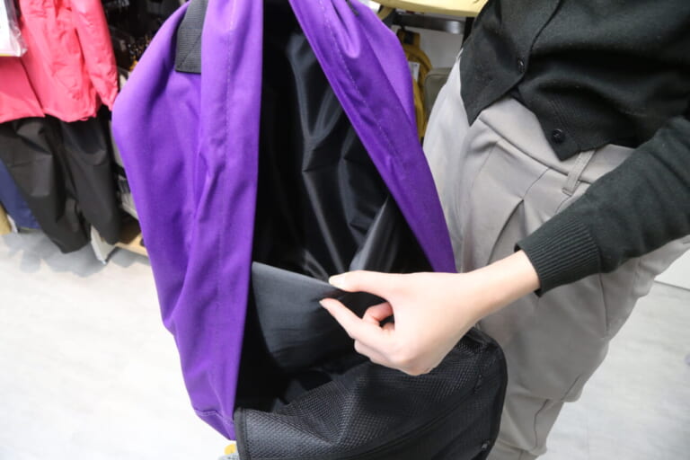 メイン収納部には荷物の出し入れがラクラクな大きな開口部を用意。頻繁に出し入れするものを入れるのにちょうどよいサイズの再度アクセスポケットも装備している。