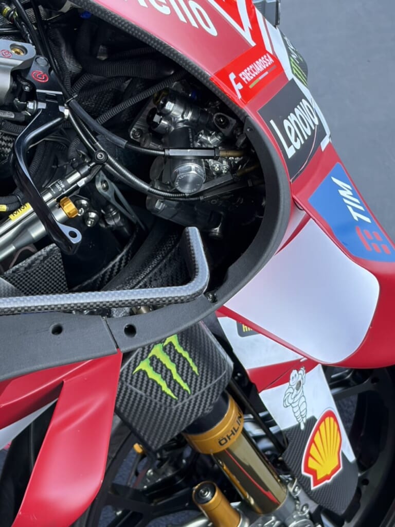 ドゥカティのファクトリーとサテライトは、フロントカウル内に収めたライドハイトデバイスのシステムに違いが。ファクトリーは下げた車高を戻す際のスピードをコントロールしている。