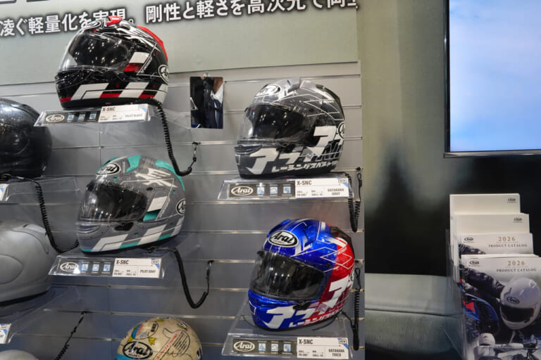 この春の東京モーターサイクルショーの会場で、多くのライダーが足を止め、熱い視線を送っていたのがアライヘルメットの最新作「X-SNC」だ。アライが伝統的に守り続けてきた「安全性能」を土台としつつ、「軽快さ」「軽さ」を突き詰めた製品としている。