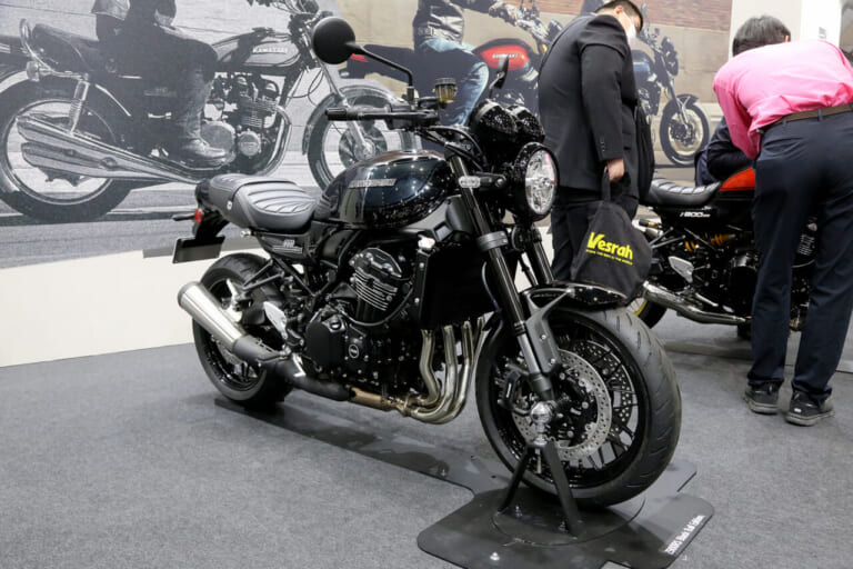 まず注目したのはZ900RS。1970年代に一世を風靡したカワサキの名車・Z1/Z2。いわずもがな、そのシルエットを21世紀の現代に昇華させたマシンだ。