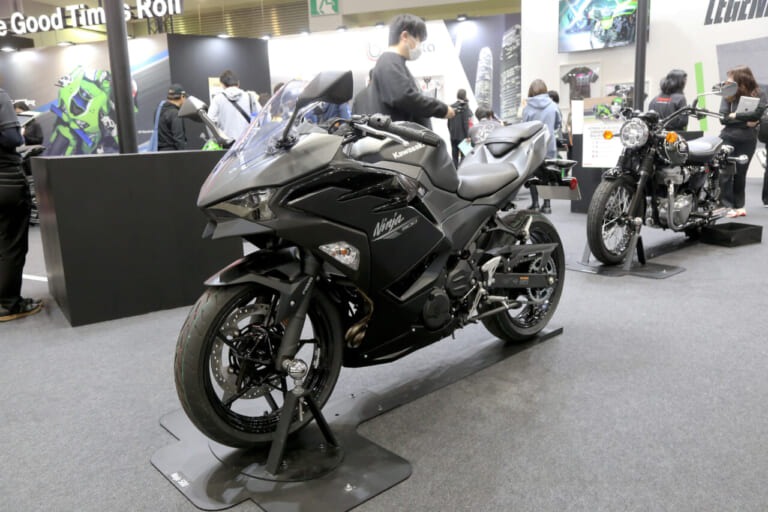 このほか最新モデルのNinja500も跨がり体験OK。カワサキブースは見て、触れて、跨がれる魅力たっぷりの体感空間になっていた。