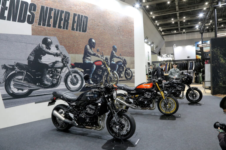 カワサキ伝統「Z」の血脈を受け継ぐ人気モデル・Z900RSの3兄弟が揃い踏み! まず注目したのはZ900RS。1970年代に一世を風靡したカワサキの名車・Z1/Z2。いわずもがな、そのシルエットを21[…]