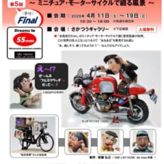 本田技研工業において二輪商品の開発業務に携わってきた安藤弘之氏による個展「“55mm”の夢の世界 =ミニチュア・モーターサイクルで綴る風景=」が開催される。本展は、独自の手法と感覚を用いて制作された、全長わずか55mmのミニチュア・モーターサイクル作品を間近で鑑賞できる機会だ。退職後に制作スピードが向上したことで、新たに生み出された渾身の作品群が並ぶ本イベントについて、展示される名車たちの背景情報 […]