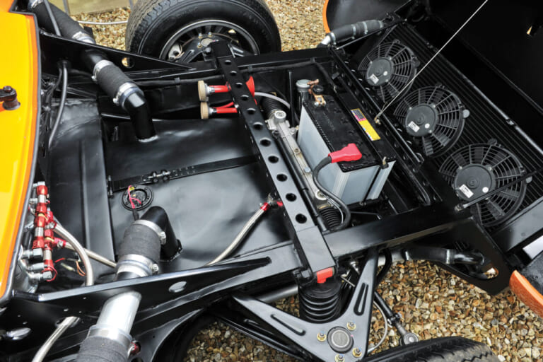 そもそも、どうしてイオタの人気が出たかというと、ウォレスのレースチューンが優れていたことにほかなりません。シャーシはエンジン積載部を除いてほぼ新設計、かつ軽量化されており、またトレッドが拡大されてよりレーシーなサスやタイヤが装着できました。