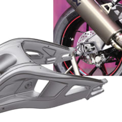 ロングスイングアームは、RC213V-Sと同様の設計手法。厚みが異なる18枚のアルミプレス材で構成されている。従来型より32.7mm長い622.7mmに伸長されているが、重量は従来型と同一に抑えられた。縦方向の剛性はグリップ力確保のために維持されたが、横方向の剛性は従来型比で15%減らして、旋回性の向上につなげている。