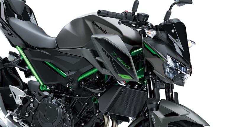 【2024 KAWASAKI Z250】◼︎水冷4スト並列2気筒DOHC4バルブ 248cc 35ps/12500rpm 2.2kg-m/10500rpm ◼︎164kg シート高795mm 14L ◼︎タイヤF=110/70R17 R=140/70R17 ●色: メタリックマットグラフェンスチールグレー×エボニー ●価格:68万2000円 ●発売日:2023年9月15日