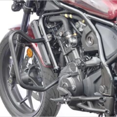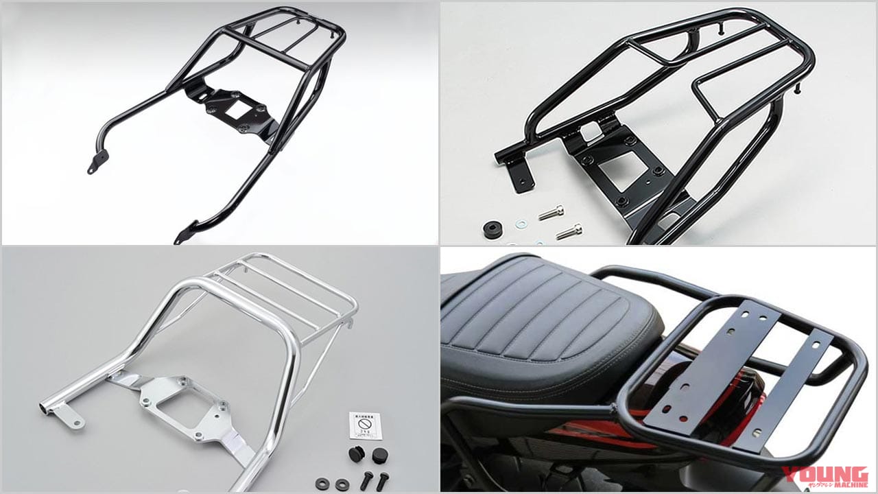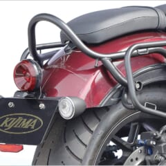 【タンデムグリップ】車体に合わせた曲線デザインが、タンデム時の安心感と荷物積載時の安定性も高めてくれる。φ19スチールパイプ製。キジマ製バッグサポート/純正サドルバッグステーの併用が可能。●価格:1万8150円