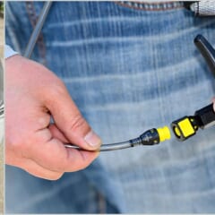 [左]まずはシャツを着て、チューブキットを通す。[右]スターターキットたちと接続すれば簡単準備OK。
