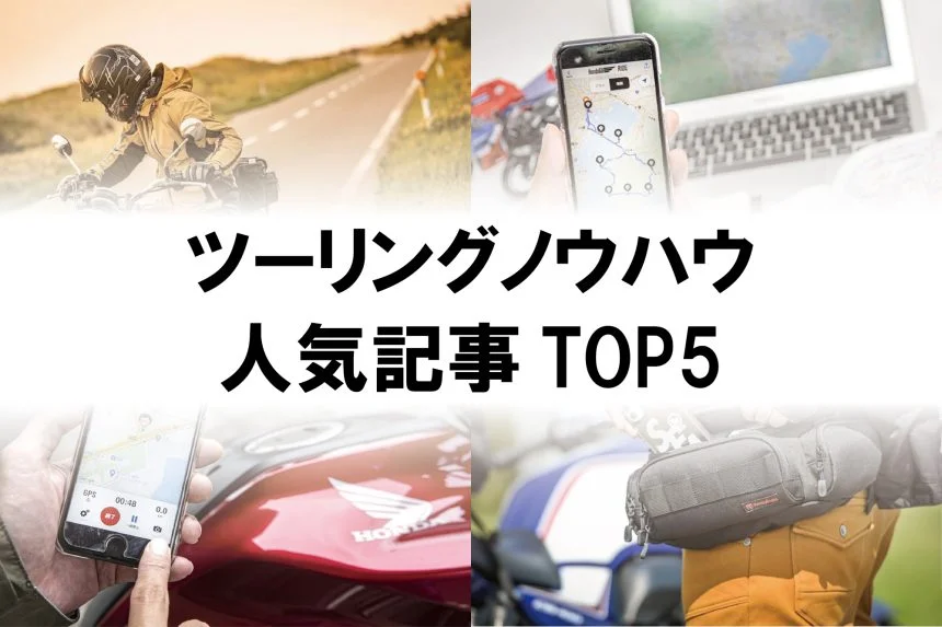 これまでHondaGOバイクラボでツーリングのノウハウを取り扱った記事の人気TOP5をまとめました。ツーリングプランを立てるのに便利なツールや、当日持っていると便利なものなど、はじめてのツーリングでも役立つ情報ばかりです。出かける前に読むと、ツーリングがもっと楽しくなるかも? 人気記事を第5位から順に紹介します。