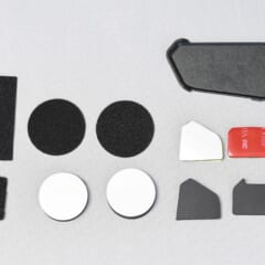 帽体への取り付けはクリップ式と両面テープ式の二通り。スピーカーマイク差し込み口は防水に配慮。