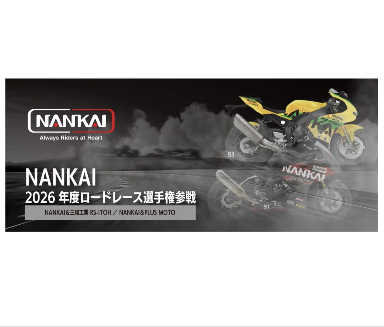 国内レースシーンにおいてライダーを支えてきた「NANKAI」こと南海部品。その2026年度モータースポーツ参戦体制が発表された。名門RS-ITOHとの強力タッグ継続に加え、若手育成を掲げた新プロジェクトも始動。さらにはマシンをホンダCBR1000RR-Rへスイッチするなど、ファンの胸を熱くさせるトピックが満載だ!