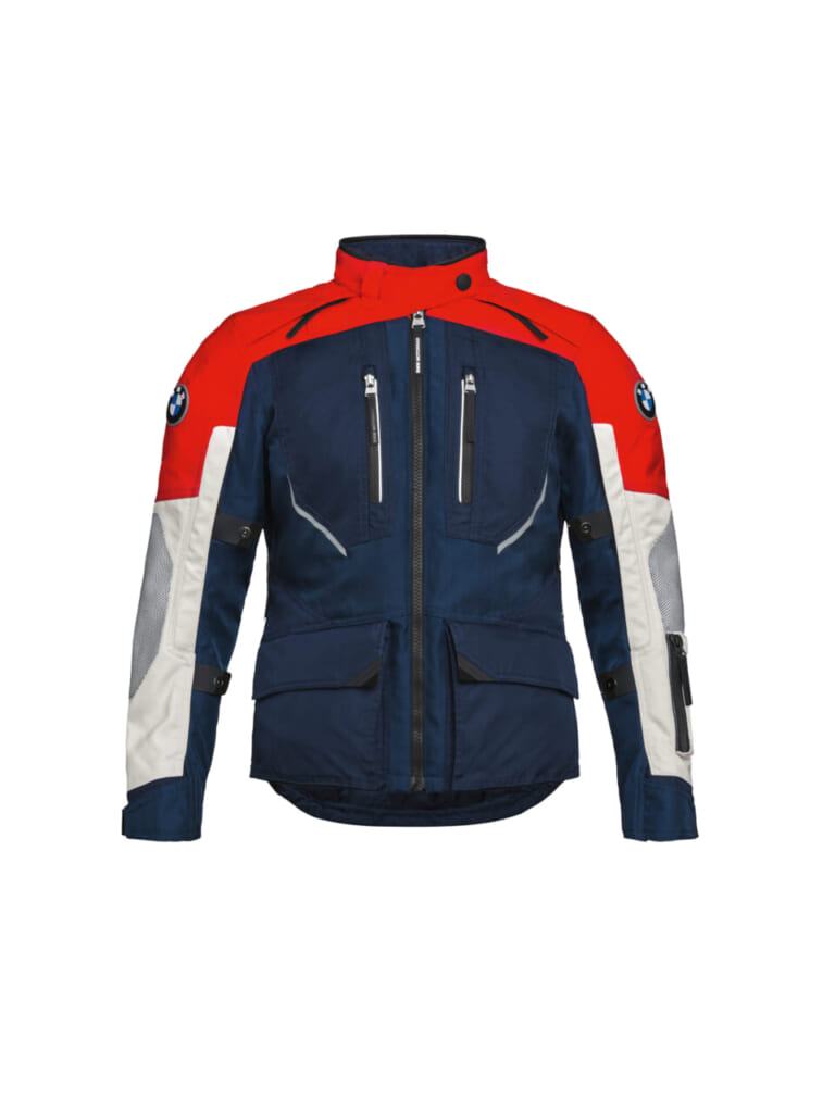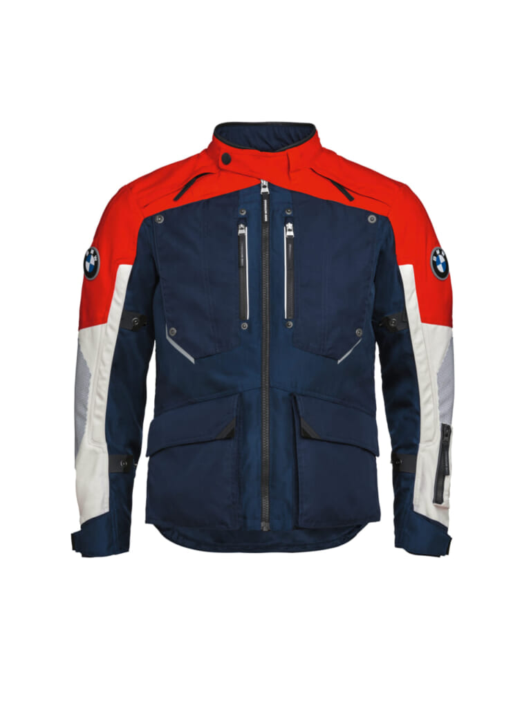 GS乗りの正装とも言える「GSラリー」がさらなる進化を遂げた。最大のトピックはやはりGORE-TEX(ゴアテックス)の採用だ。ハードなオフロード走行での泥汚れや、不意の豪雨、さらにはロングツーリングでの体温調節まで、これ一着で完結するタフさが自慢。各所に配置されたベンチレーション機能により、走行中のストレスを軽減し心地よさをキープ。ジャケットにはロングタイプのバックプロテクターを採用している。