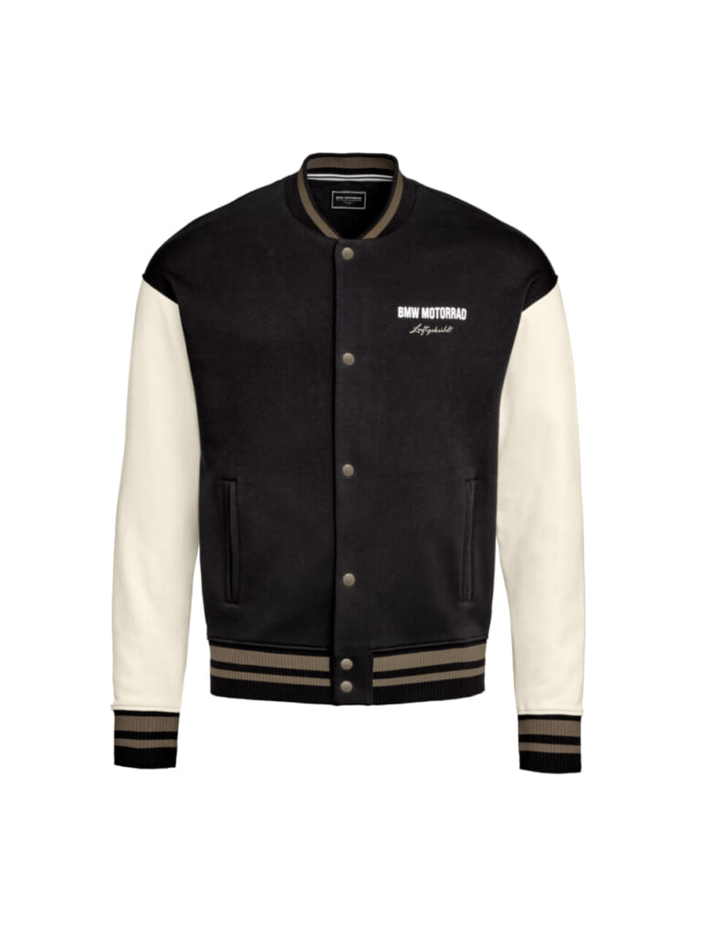 「BMWのバイクは持っていないけれど、ブランドの世界観は好きだ」という層にも刺さりそうなのが、このスタジャン風ジャケット。ベルリンのストリートカルチャーを意識した都会的なデザインが光る。