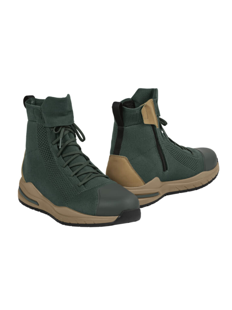 最後は足元。その名も「Ginza」。名前からして洗練されているが、中身もしっかりライディング仕様。カジュアルな見た目ながら、つま先やかかとには補強パーツを配し、アウトソールにはオイル・燃料耐性を備えたラバーを採用し、安定したグリップ力を発揮。着脱しやすいサイドファスナー、 ミッドソールによるクッション性も備え、EN 13634認証をクリア。ペダル操作のしやすさやプロテクション性を秘めている。