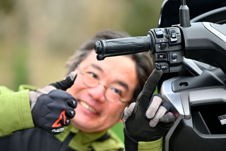 またツーリング先で出くわすワインディングのような状況でも“YECVT”はとても便利だった。上り坂で“もうちょっと加速が欲しいな?”なんて思った時に「SHIFT」ボタンを押せば“YECVT”が加速をアシスト。しかも、その加速も決して過激なものではなく、MT車で言えばギヤを1速ではなく0.5速くらい落としたくらいのローギヤード化なので気軽に使える。