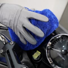 |カウルやエンブレムの隙間に残った水滴を瞬時吸水!  究極の拭き取りアイテム「ディテイリングクロス」解説