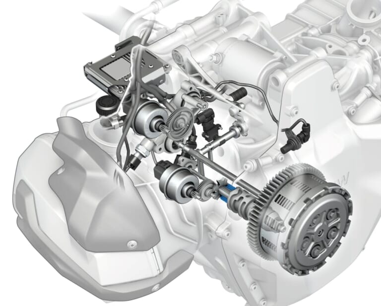 BMWのラインナップでASA 機構を搭載できるのは、今のところR1300 系のエンジンを搭載するモデル。ヤマハのY-AMTと考え方はよく似ているが、“ クラッチ・アクチュエーター” と“ シフト・アクチュエーター” をクランクケースに内蔵するのがBMW・ASA の特徴。