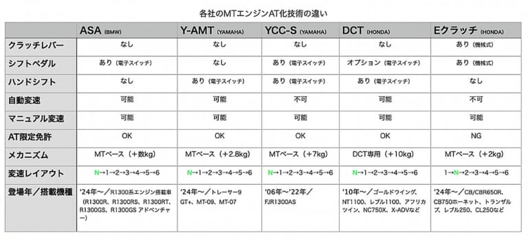 近年、国内外のバイクメーカー各社から次々登場しているのが、ギヤ付きのMTエンジンをオートマチック(以下:AT)化したモデル。スクーターなどの多く見られるCVT系のオートマチックモデルは昔からあるが、ギヤ付きの二輪用MTエンジンをAT化したモデルとなると意外に歴史は浅い。