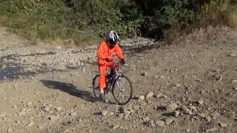頭の中で「これは自転車だ」って認識した途端に、オフロードコースを爆走するママチャリが面白いのなんのって。つっても「爆走」って言ったって、そりゃオフロードバイクからすれば蚊に追い抜かれそうな遅さなのですが、乗っている本人はパンツの中まで汗だくになりながら夢中になってペダル漕いで笑いっぱなしなのですから、その胸中は推して知るべし。