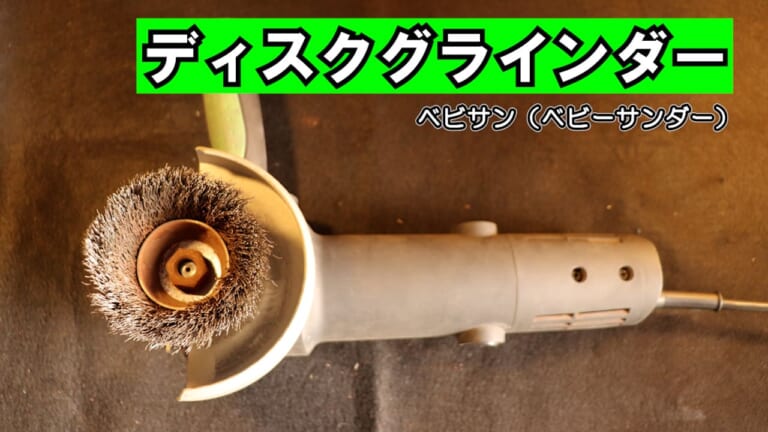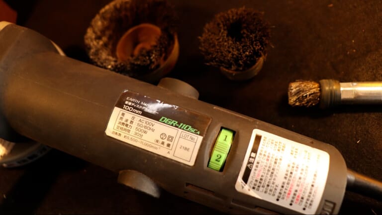 そこで使いたいのが、広い範囲のサビ落としに有効なアイテム「ディスクグラインダー」と「カップブラシ」のコンビ。