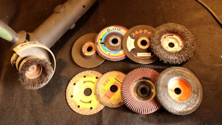 今回はカップブラシを取り付けて使用しましたが、ディスクを交換することで、ブロックを切ったり、アルミのバフ掛け(鏡面研磨)をしたり、塗装を剥がしたり、材木を磨いたり…多様な用途に使えるのです。