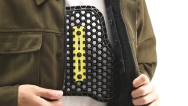 どんなジャケットにも合わせられるベルトタイププロテクター ライダーの命を守る胸部プロテクターは、万が一の事故の際に内蔵への衝撃を和らげ、重篤なダメージから身を守る重要な役割を果たす。これまでも多くのプ[…]