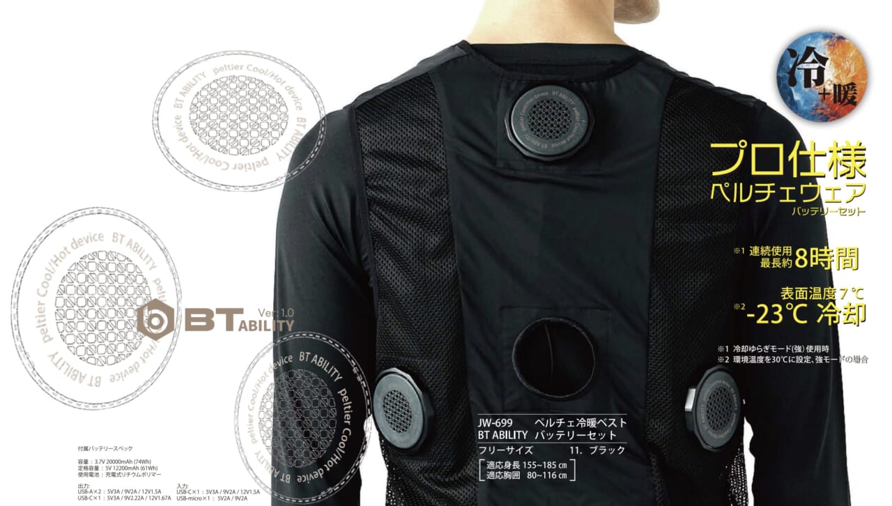 コンパクトながら高出力のペルチェ冷暖ベスト