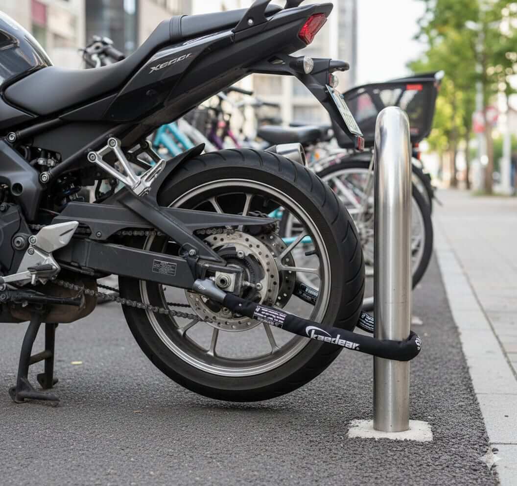 ワイヤーロックのように嵩張らず、ツーリングバッグの隙間に収まるコンパクトさを維持しながら、サンダーなどの電動工具を使わなければ切断困難な強度を持たせている点は、現実的な防犯対策として非常に理にかなっている。