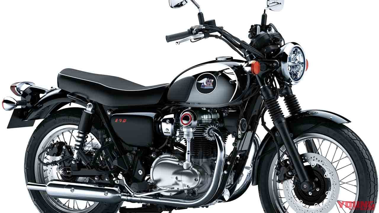 カワサキW1の元となったのが500メグロK2(左)。その子孫とも言うべきW800をベースに伝説ブランドを復活。カワサキ空冷バーチカルツインの歴史を確固なものとしている。