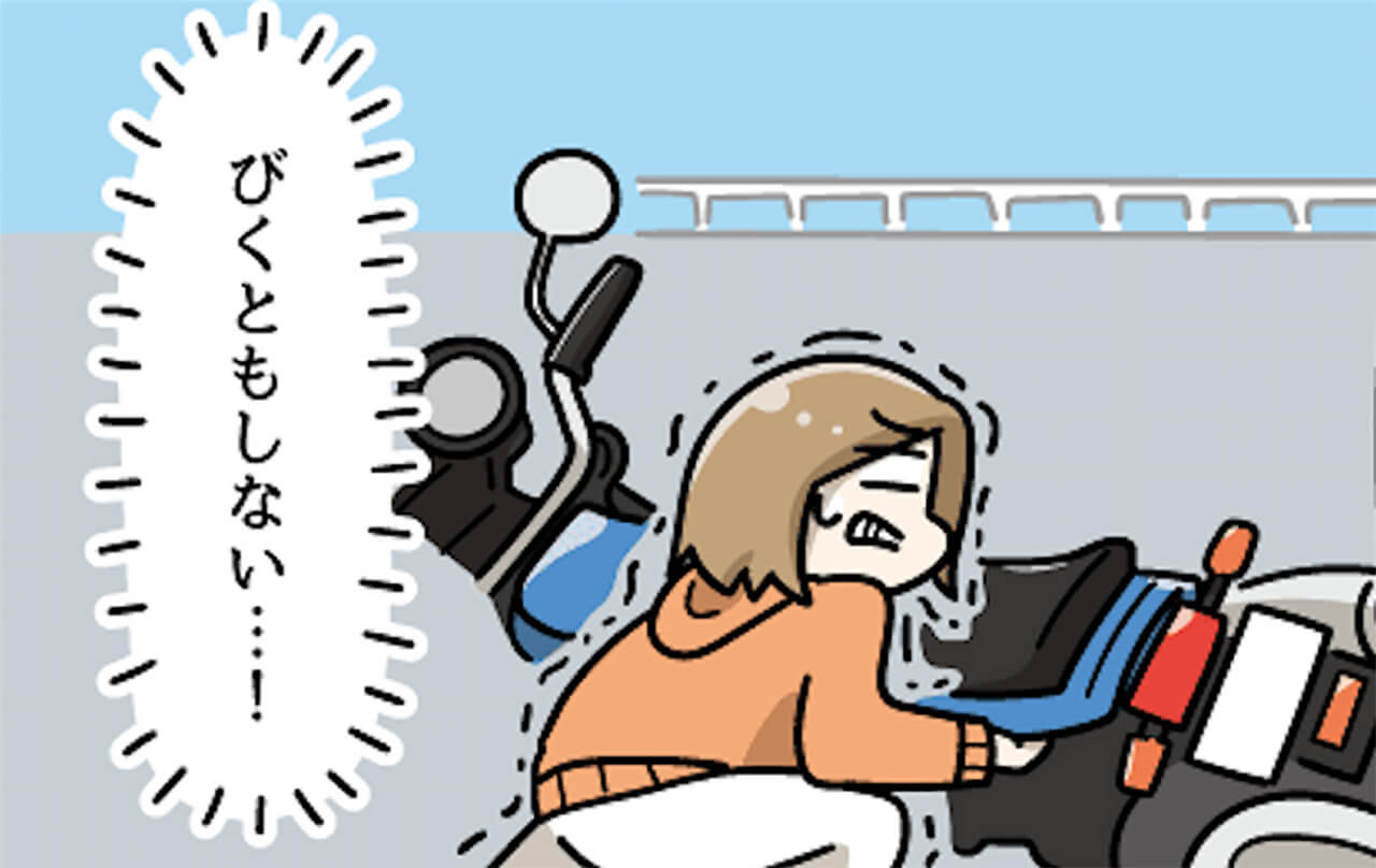 「バイクに興味はあるけど、自分で乗れる気もしないし……」と思っていたイラストレーターが、ひょんなことから免許を取ることを決意。まったくのバイク初心者が、免許取得からツーリングのあれこれなどを描いていくエッセイ風の連載です。第3回目は、教習所で行われた「引き起こし審査」のお話です。